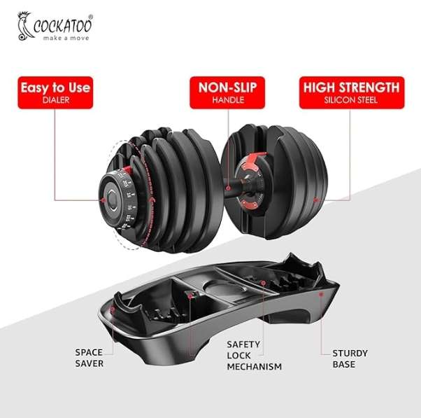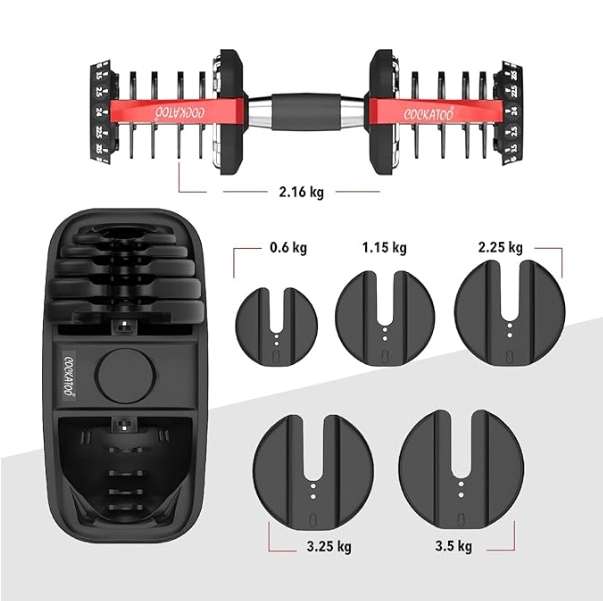 Cockatoo ADB-01 2.5 KG- 24 Kg Adjustable Dumbbell Set, Home Workout Gym Equipment Men and Women, Quick One-Second Adjustment 15-IN-1 Dumbbell Dumbbells Set For Home Gym(1 Year Warranty) (24 Kg, Red)